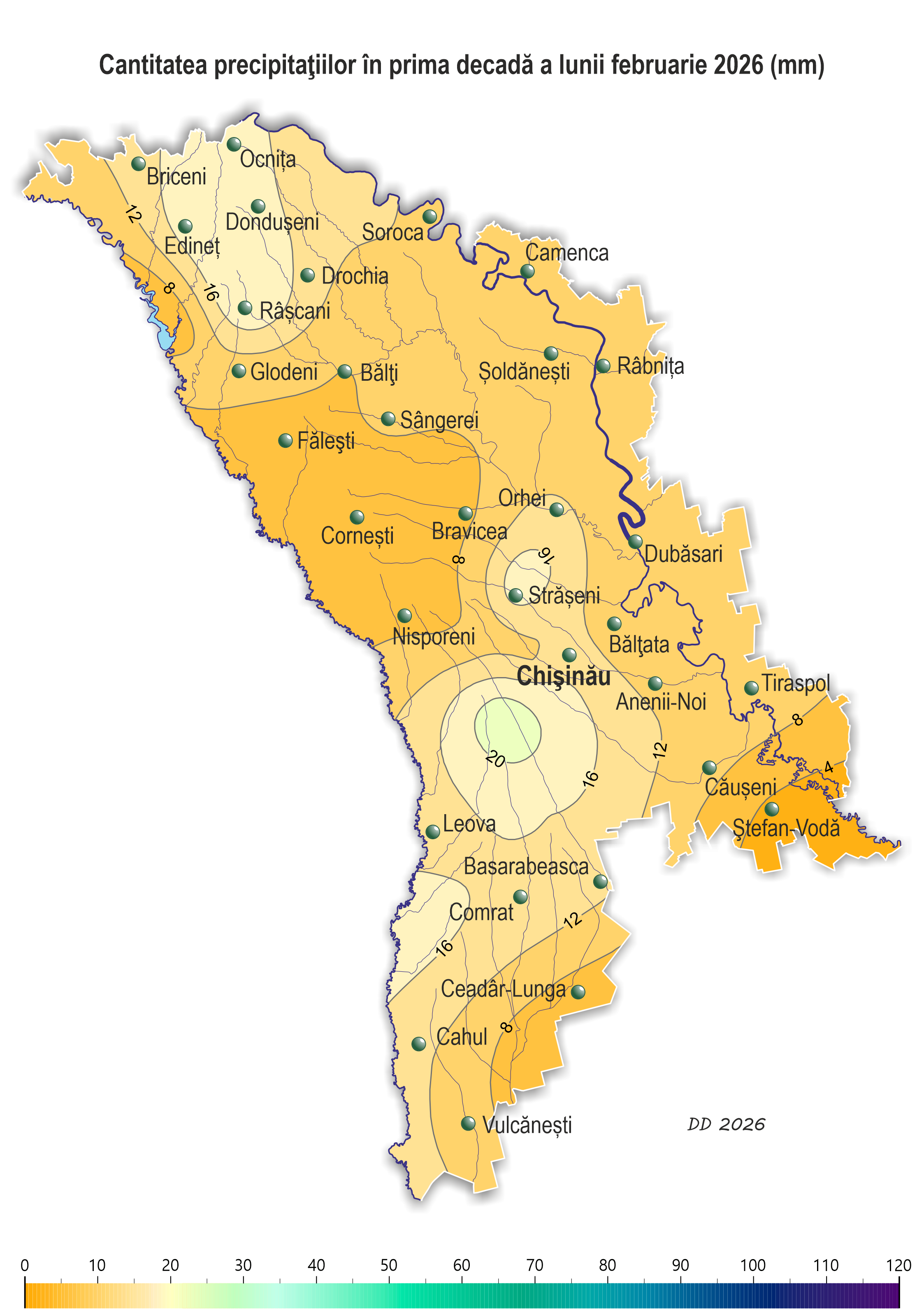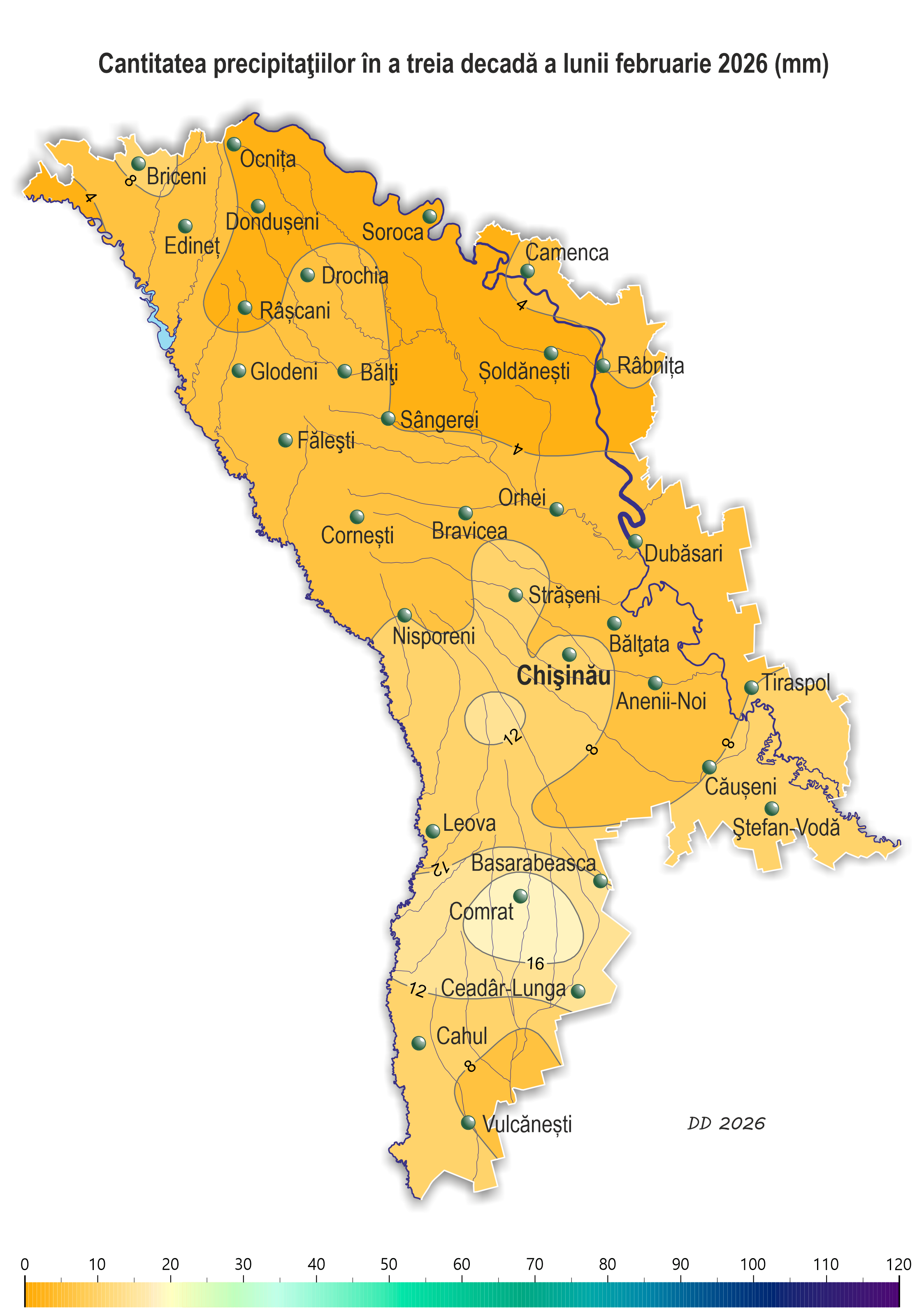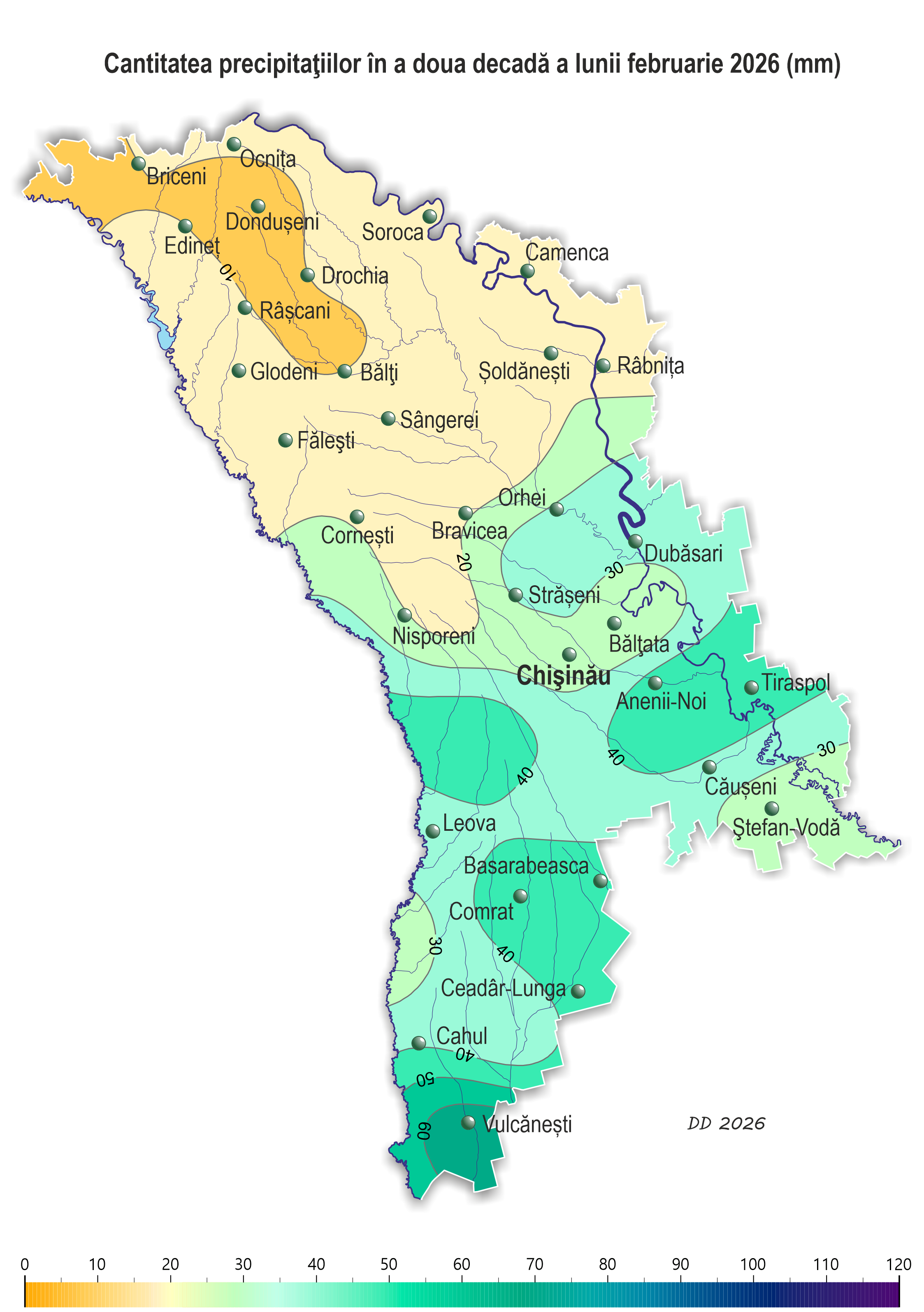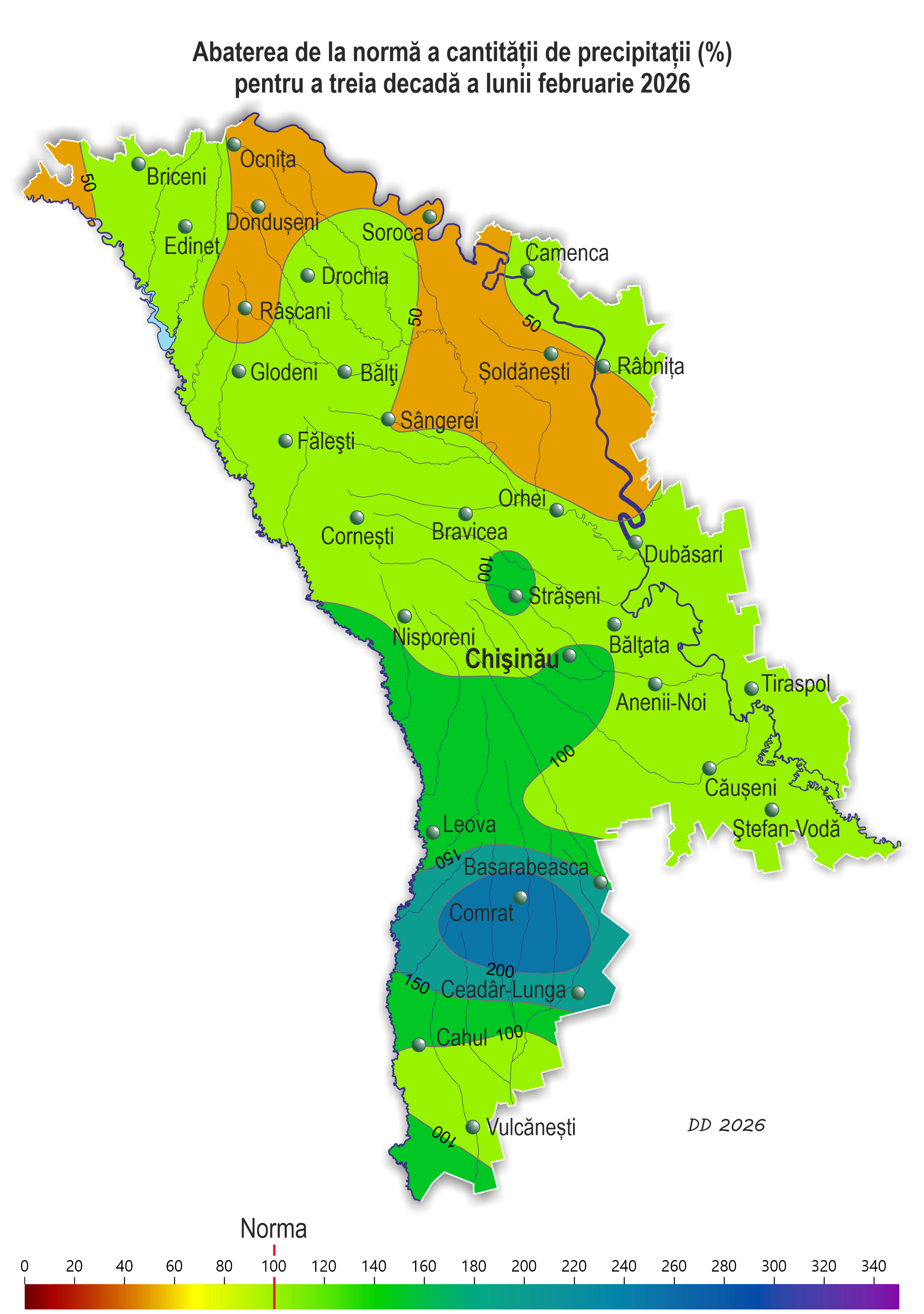 – sud – în fond 8-14 mm (90-175% din norma decadică), iar la SM Comrat – 20 mm (250% din norma decadică).