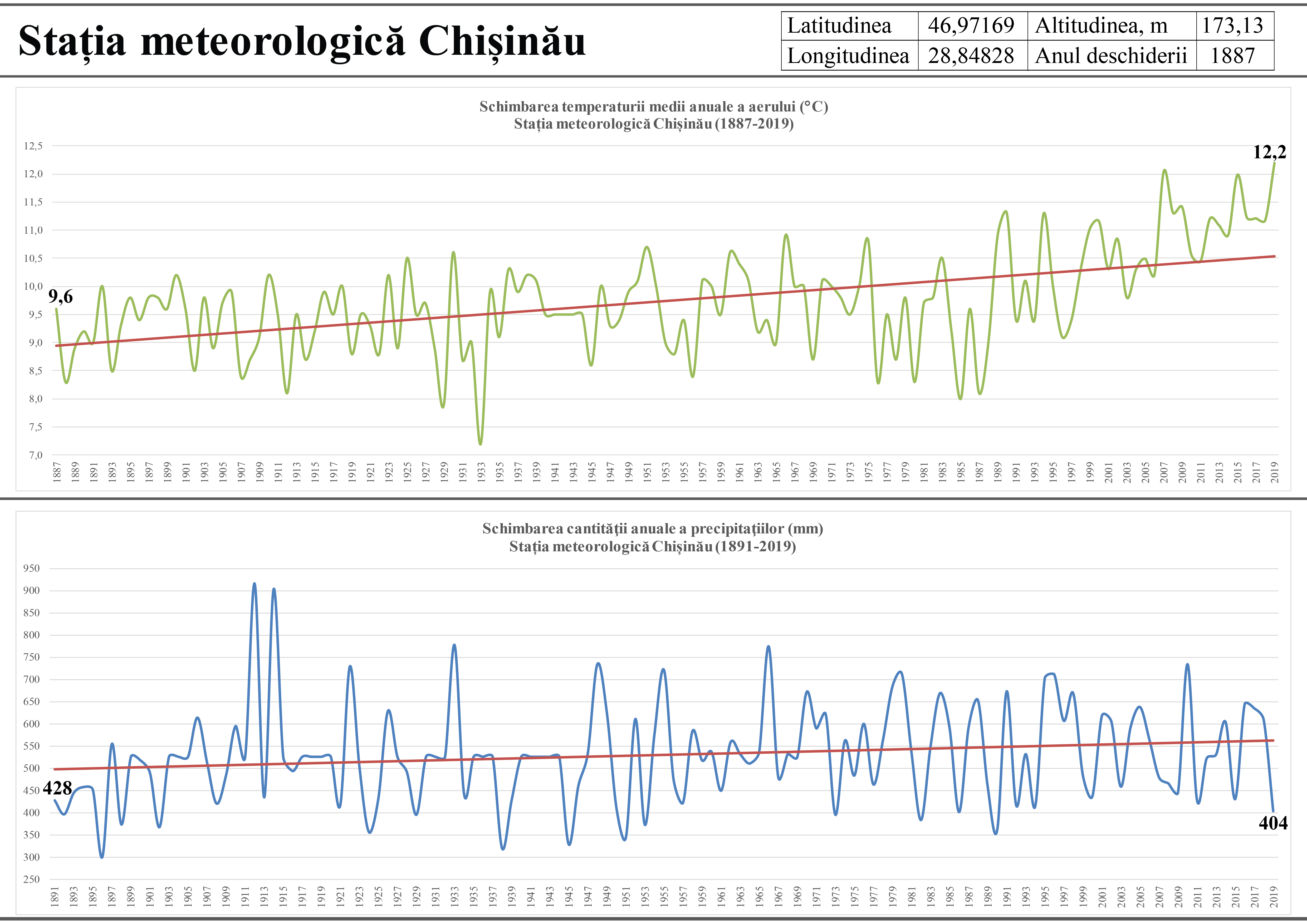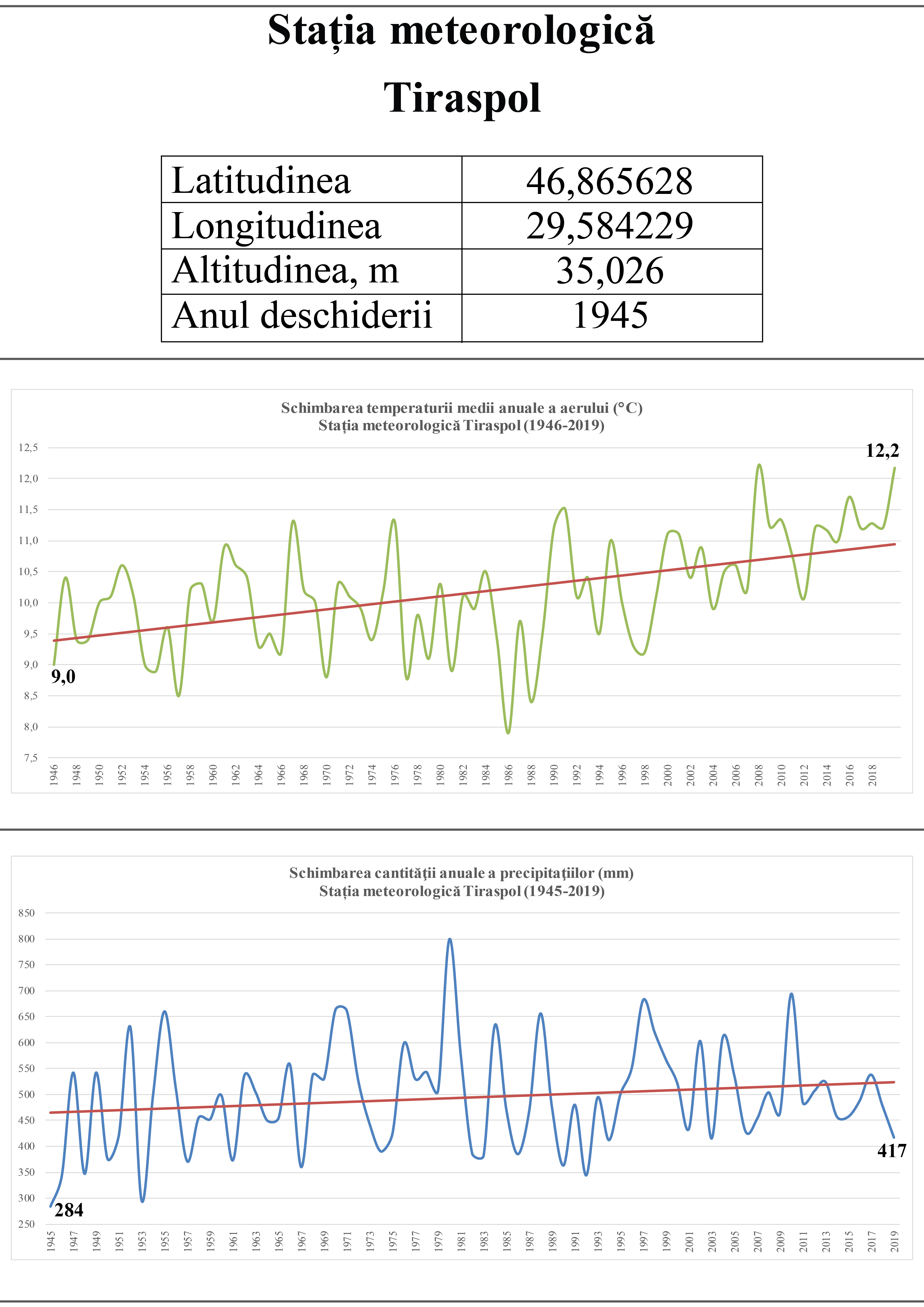 Tendința schimbării temperaturii medii a aerului și a cantității de precipitații pe teritoriul Republicii Moldova.