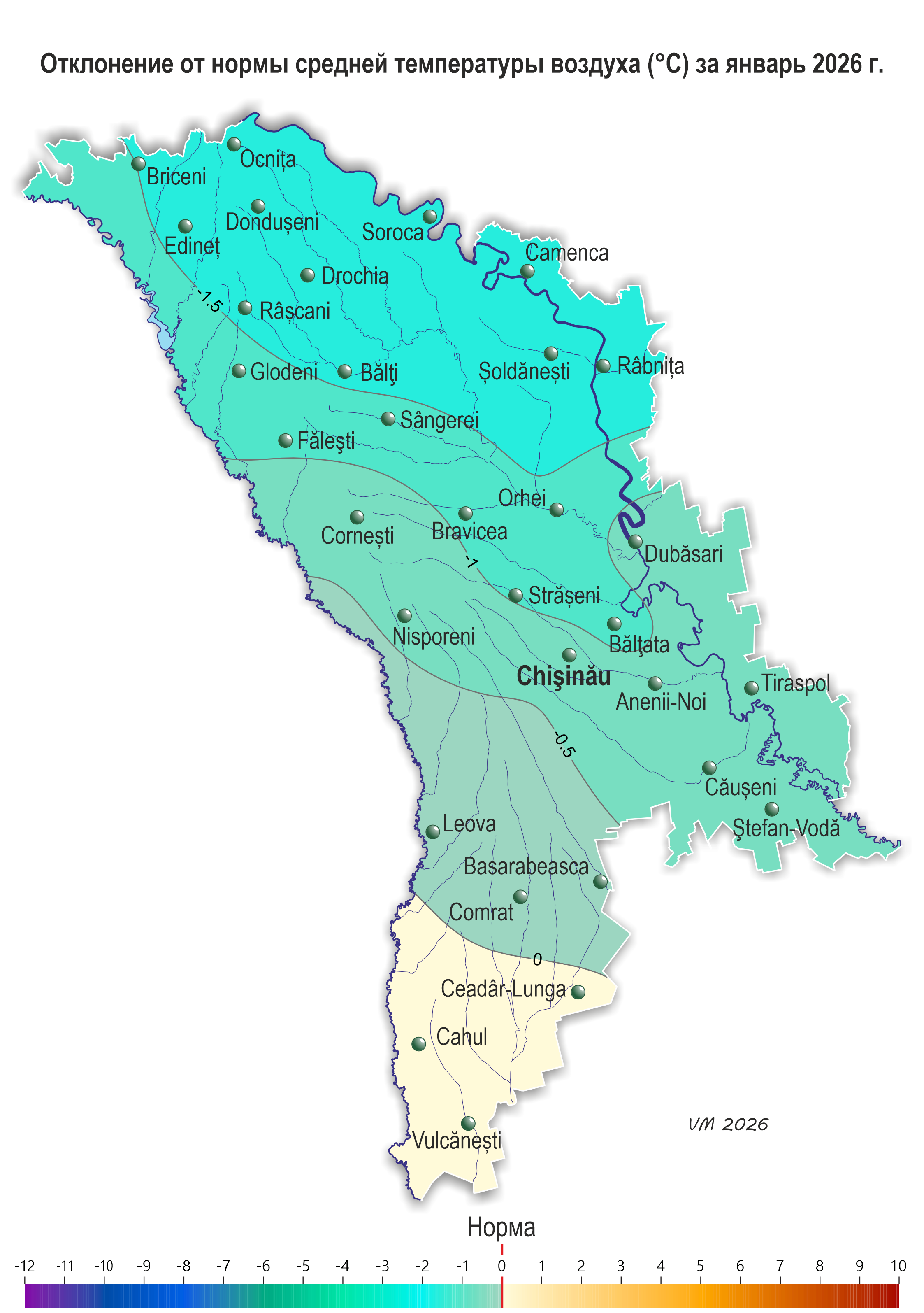 4. Вероятностный метеорологический прогноз на январь 2026 года для территории Республики Молдова.
